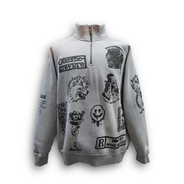 すでに高い支持を得ている Hyper Hoody のデザインをベースに、 デイリーシーンへ落とし込みやすく再構築したディフュージョンモデル。 ハーフジップ仕様のハイネックデザインが、 スポーティさとモード感を両立し、ジップの開閉で表情の変化を楽しめます。 ボディ全体には、 ウォッシュ感のある裏起毛スウェットを採用。 軽量ながら高い保温性を実現しています。 フロント・スリーブ・バックに散りばめられた グラフィックプリントが、 ストリート×アートのエッジを効かせ、一枚で主役になる存在感を演出。 レイヤードにも適したシルエットで、セットアップはもちろん、単体使いでもスタイリングの軸になる一着です。 Women's GRAY168cm XL着用 / BLACK155cm M着用 Men'sBLACK 175cm XL着用 M身幅138cm 着丈66cm L身幅142cm 着丈70cm XL身幅146cm 着丈72cm