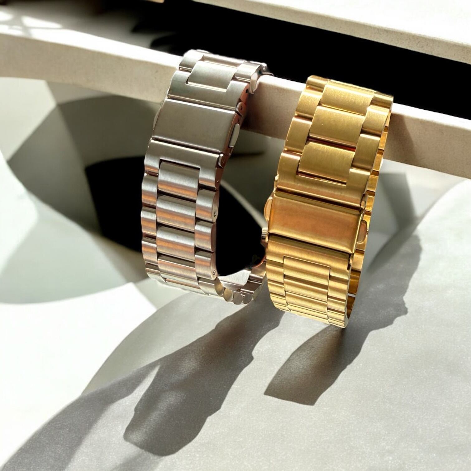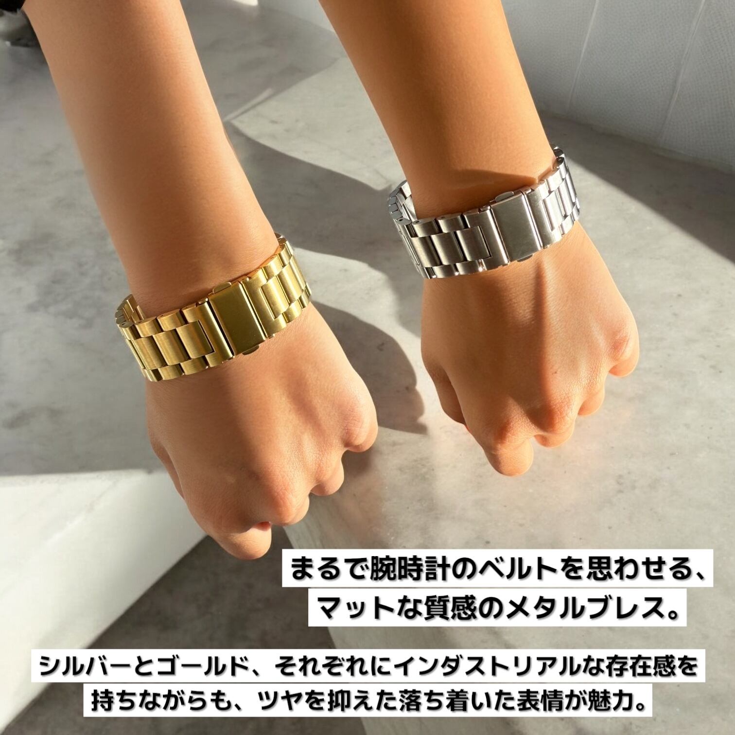 マットな質感がクールな印象を与える、ウォッチバンド風ブレスレット。