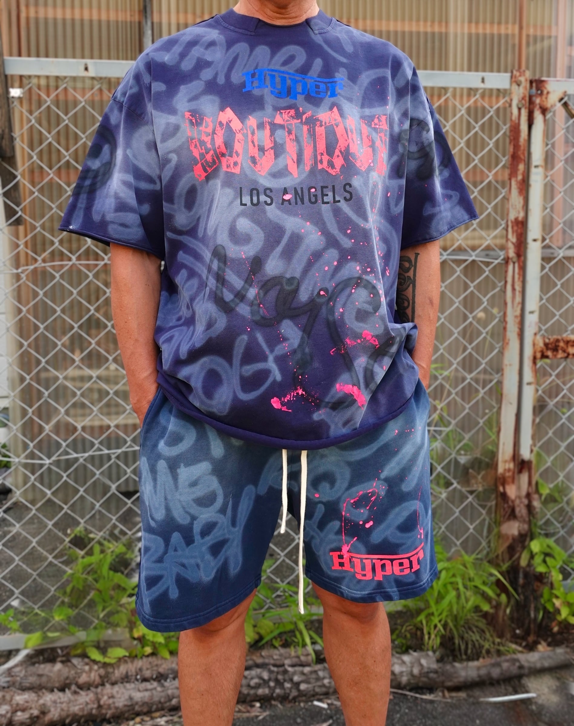 Christian Gail Graphic Art ペイントアートハーフパンツ ネイビー