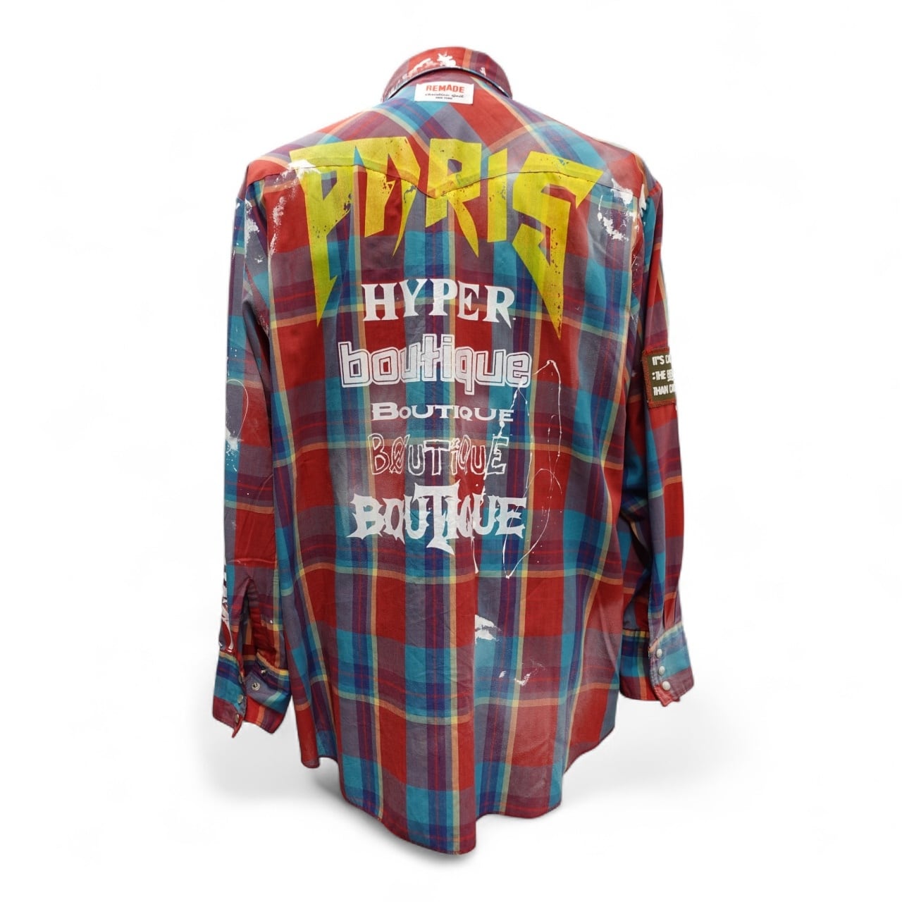 Wranglerのヴィンテージシャツに、Christian Gailによるグラフィックアート、ハンドペイント、オリジナルワッペンを贅沢に施したスペシャルカスタムシャツ。