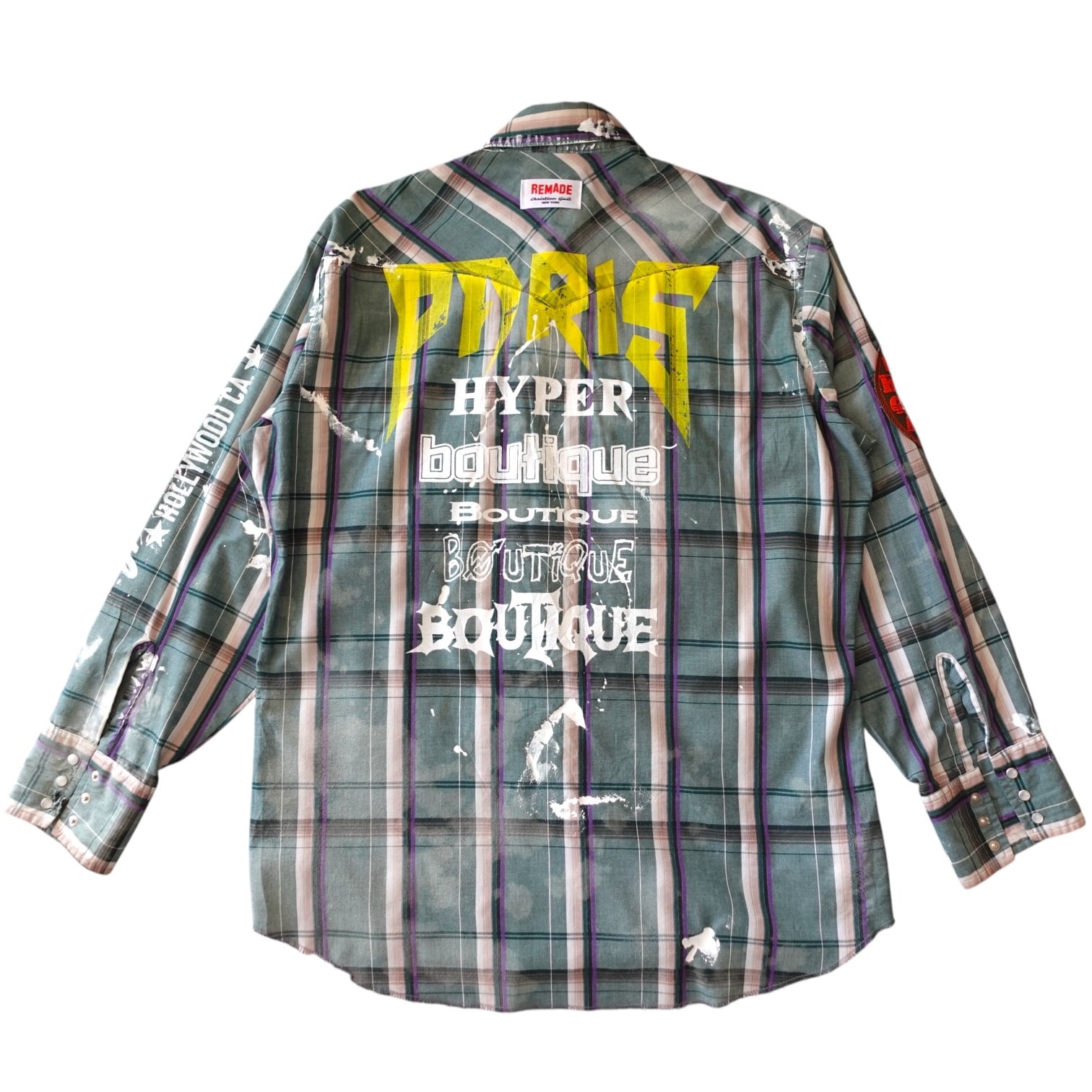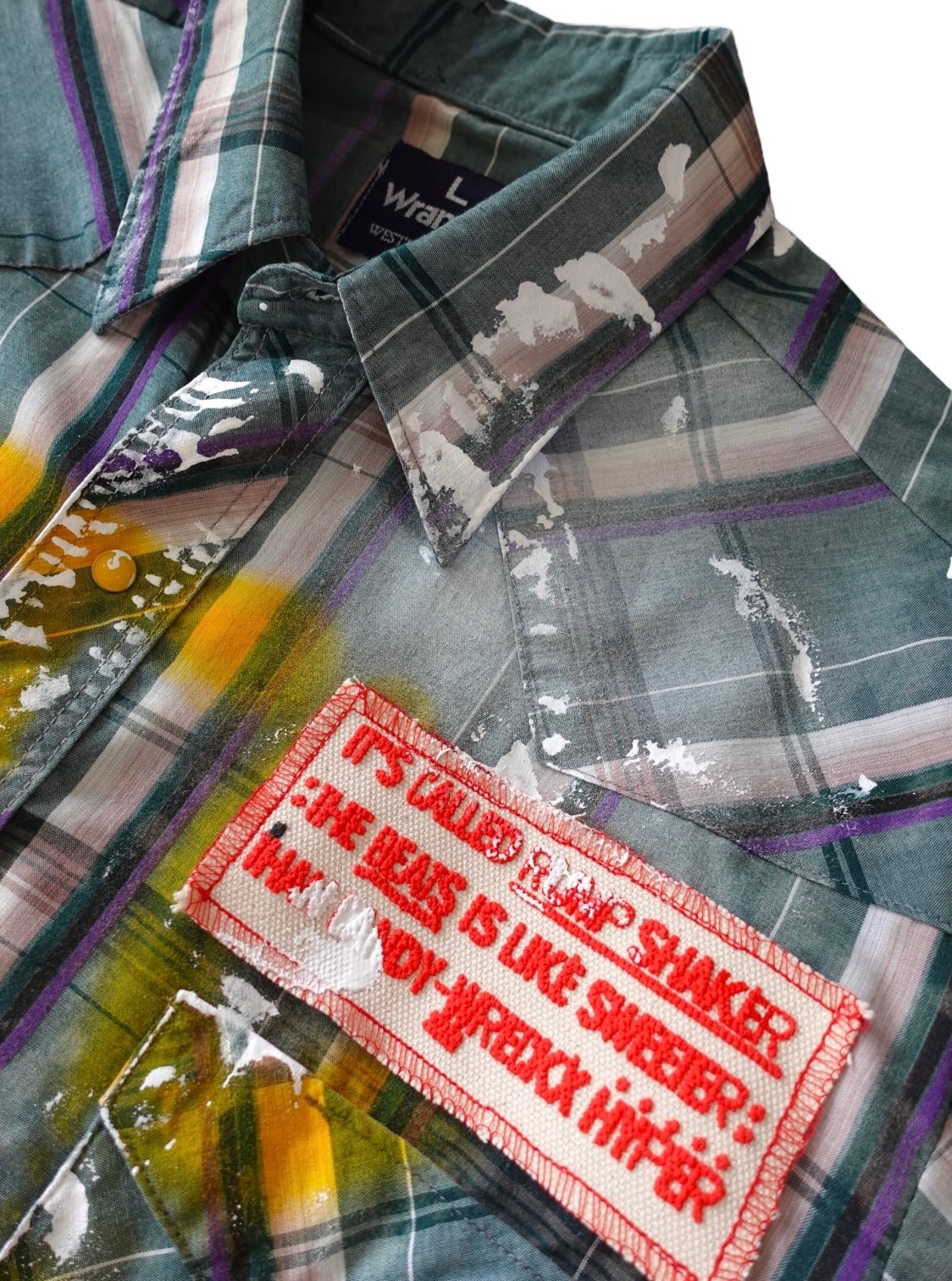 Wranglerのヴィンテージシャツに、Christian Gailによるグラフィックアート、ハンドペイント、オリジナルワッペンを贅沢に施したスペシャルカスタムシャツ。