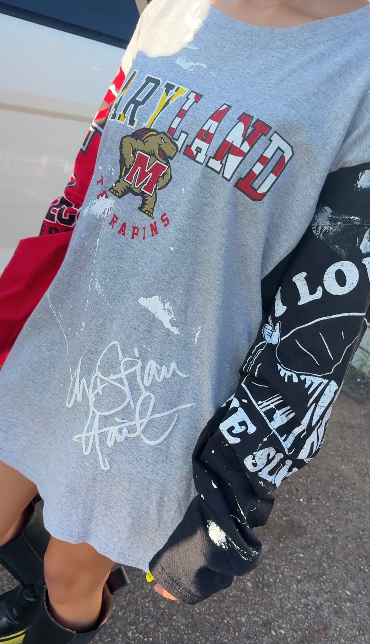 海外のスポーツTシャツをテーマに、3枚のヴィンテージTシャツを組み合わせ、大胆なペイントアートと立体感のあるグラフィックアートを施しました。