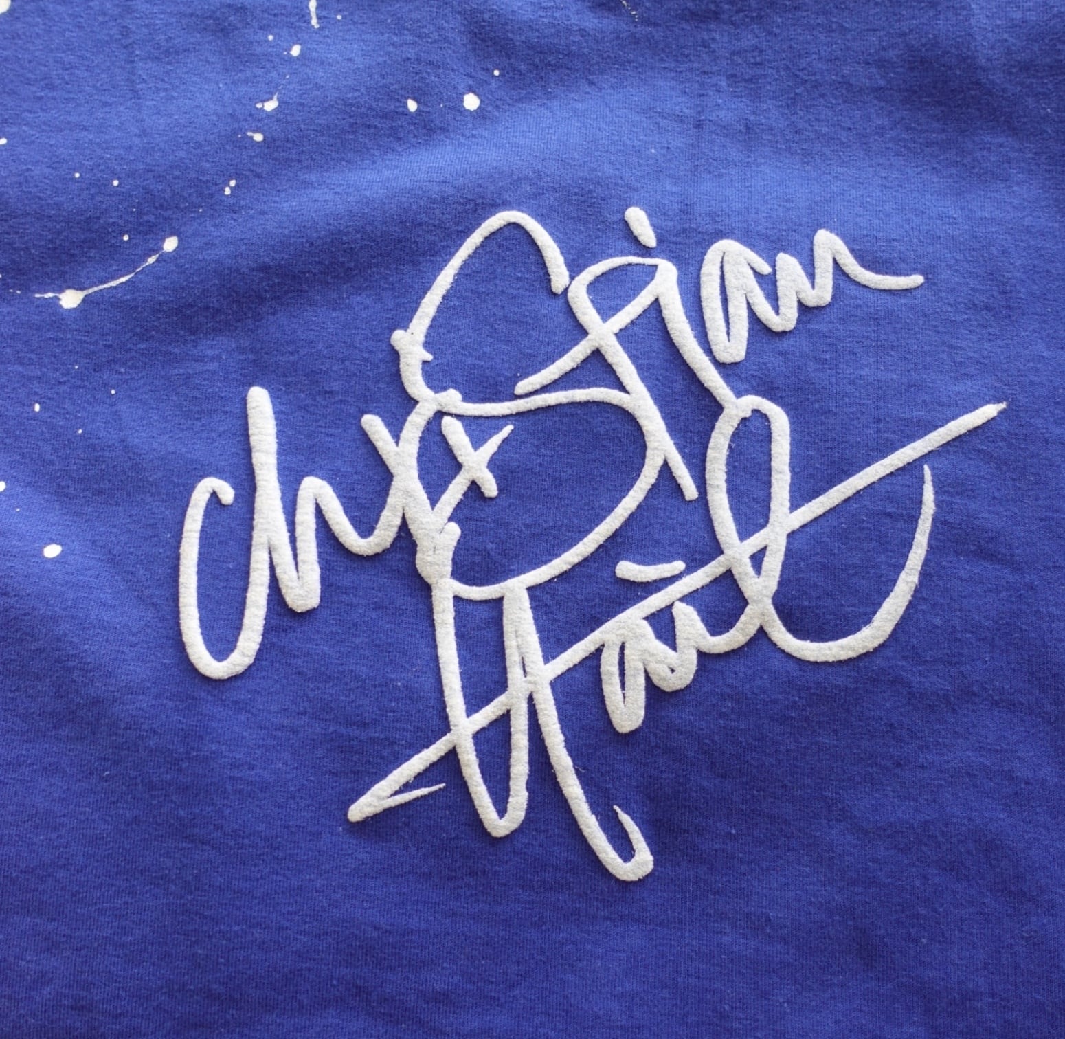 海外のスポーツTシャツをテーマに、3枚のヴィンテージTシャツを組み合わせ、大胆なペイントアートと立体感のあるグラフィックアートを施しました。