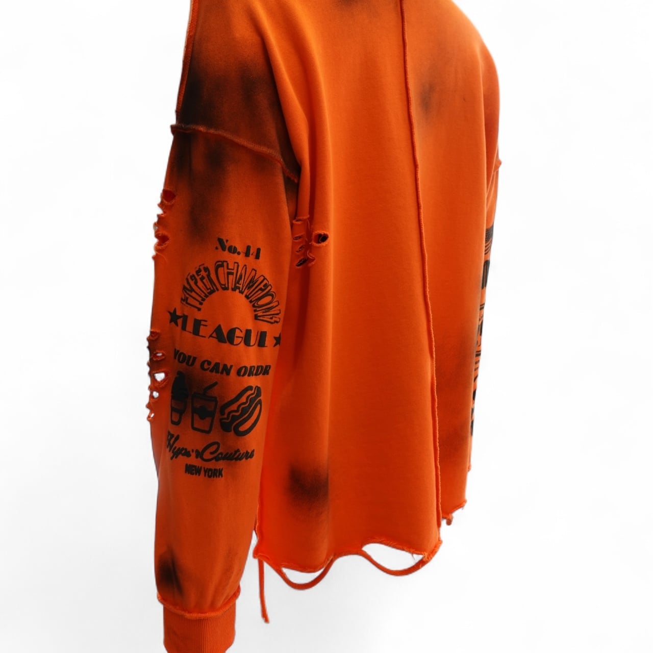 スウェットならではの軽やかな着心地で、季節の変わり目にも快適に着用可能。程よいブロークン加工と切りっぱなしのボディデザインが、ストリート感を演出します。