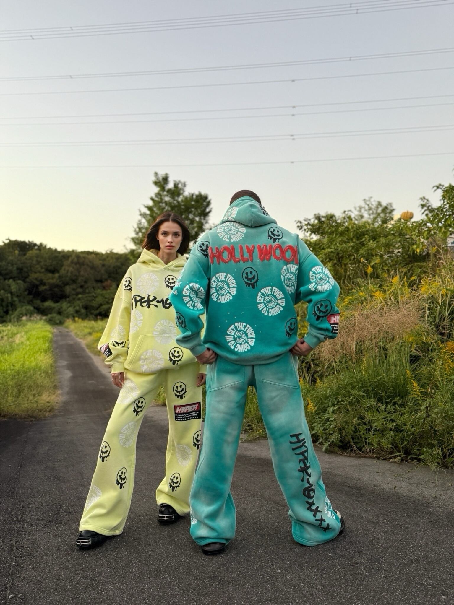 同素材のスウェットトップスとのセットアップスタイリングはもちろん、単品でもコーディネートの主役になります。