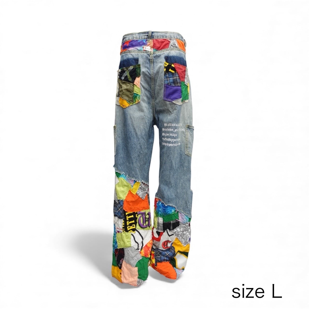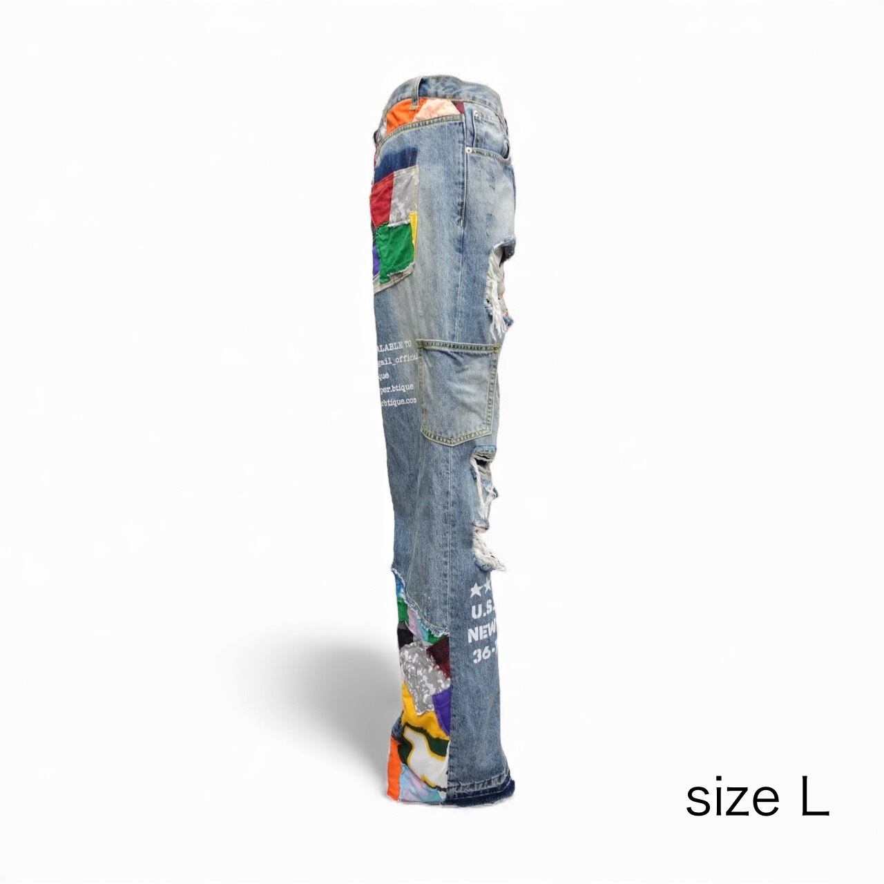 ラフでルーズなシルエットに、ヴィンテージライクなダメージ加工と大胆なオリジナルパッチワークを施した一点ものアイテムです。