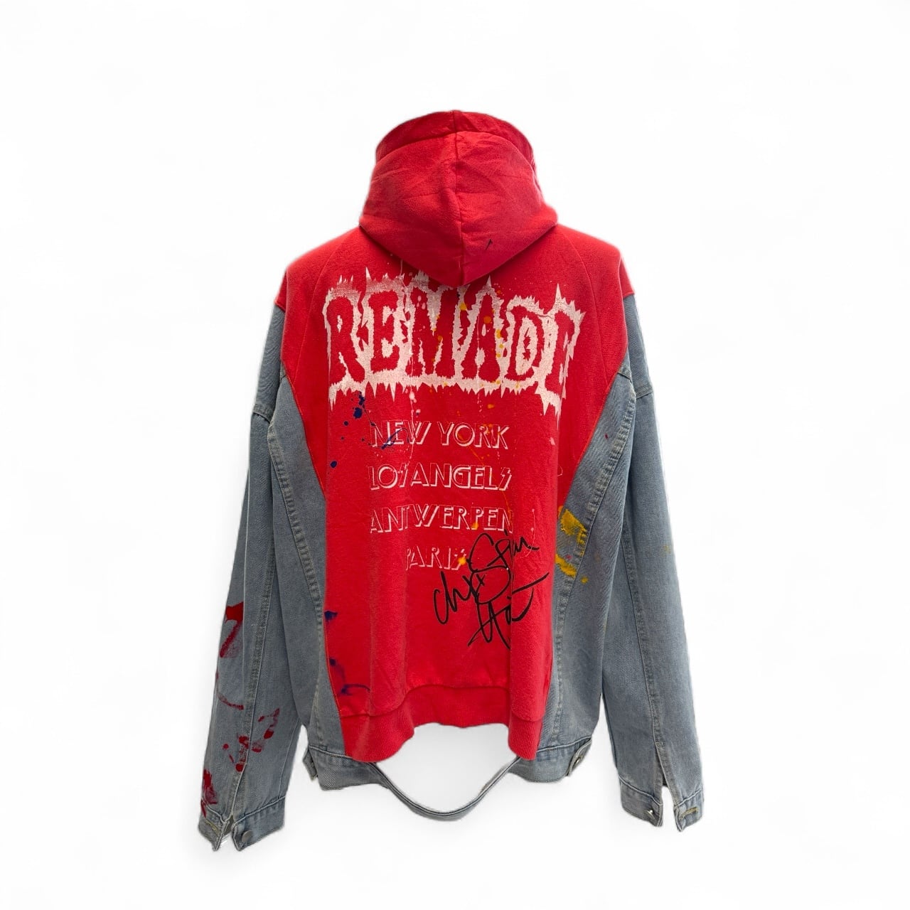 フロントボディには厳選されたヴィンテージのadidasフーディーを使用し、両袖にはデニムジャケットをリミックス。