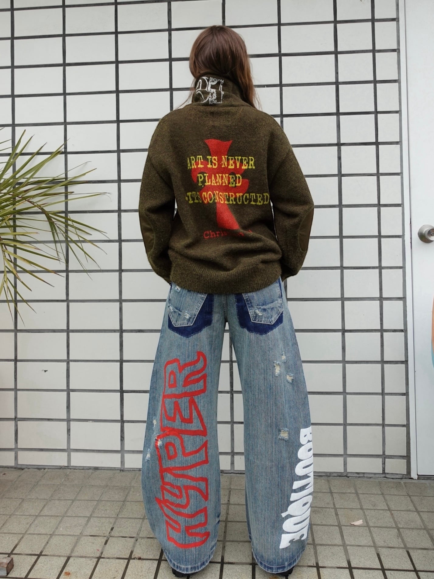 随所に施されたオリジナルのグラフィックアートとダメージ加工が、シンプルながらも存在感のある一本に。