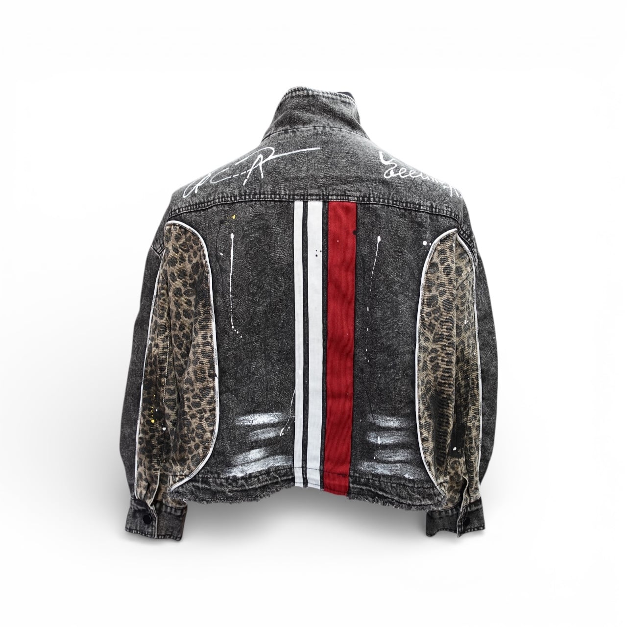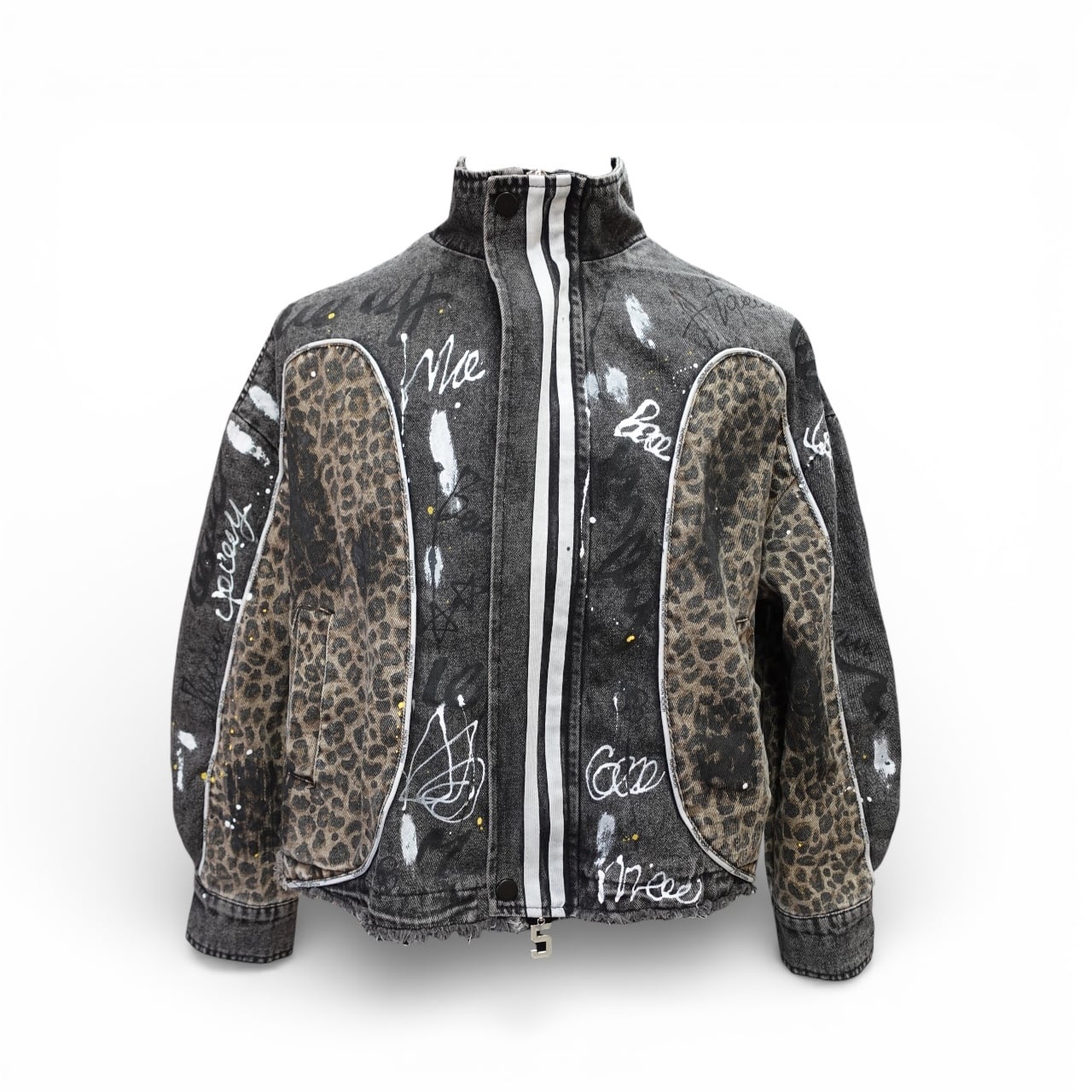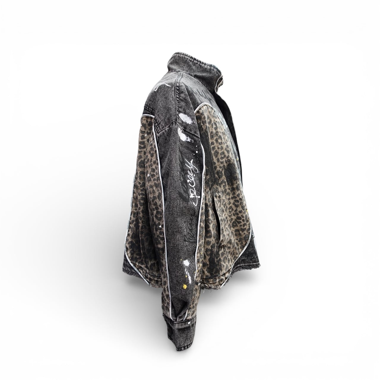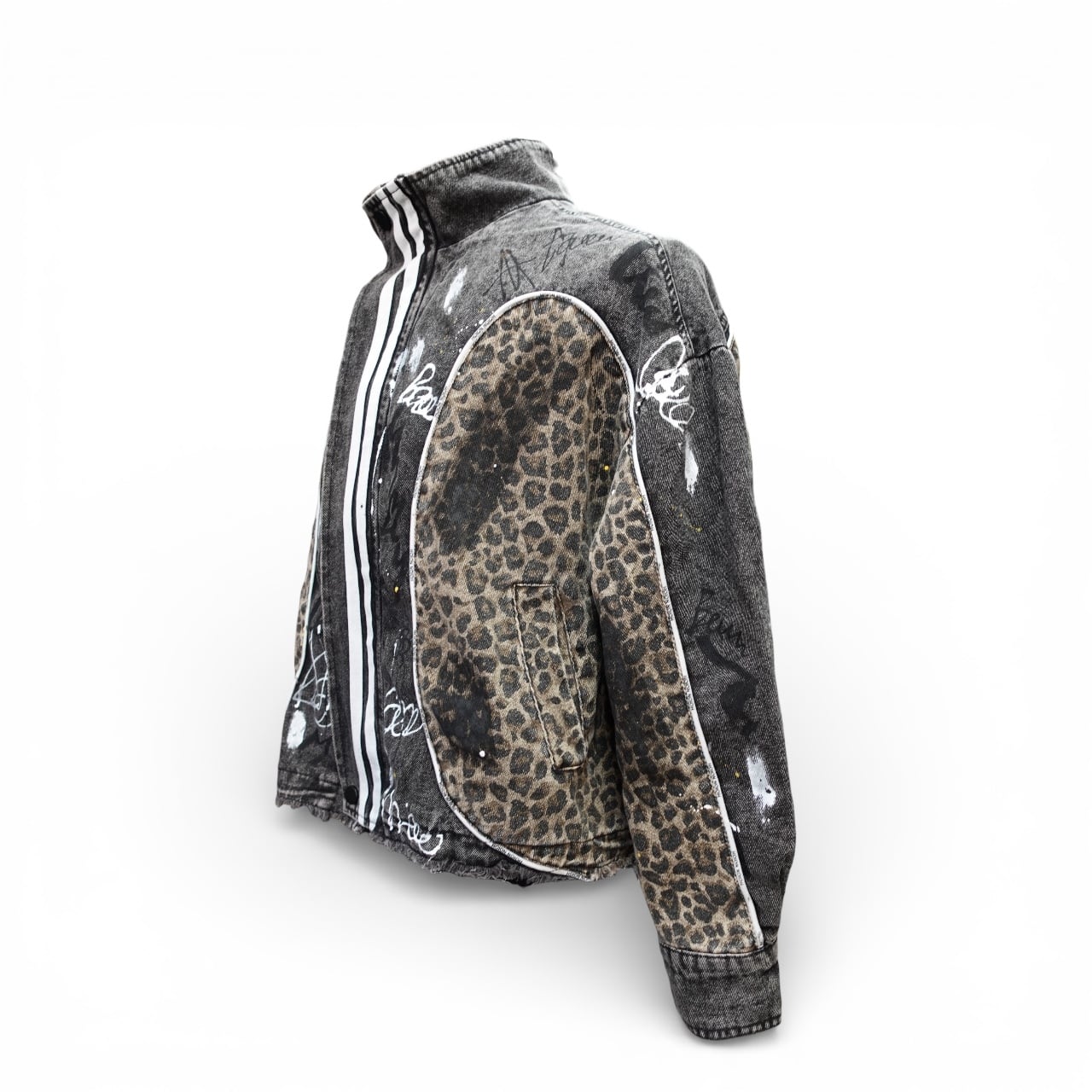 Leopard Denim Jacket BLACK