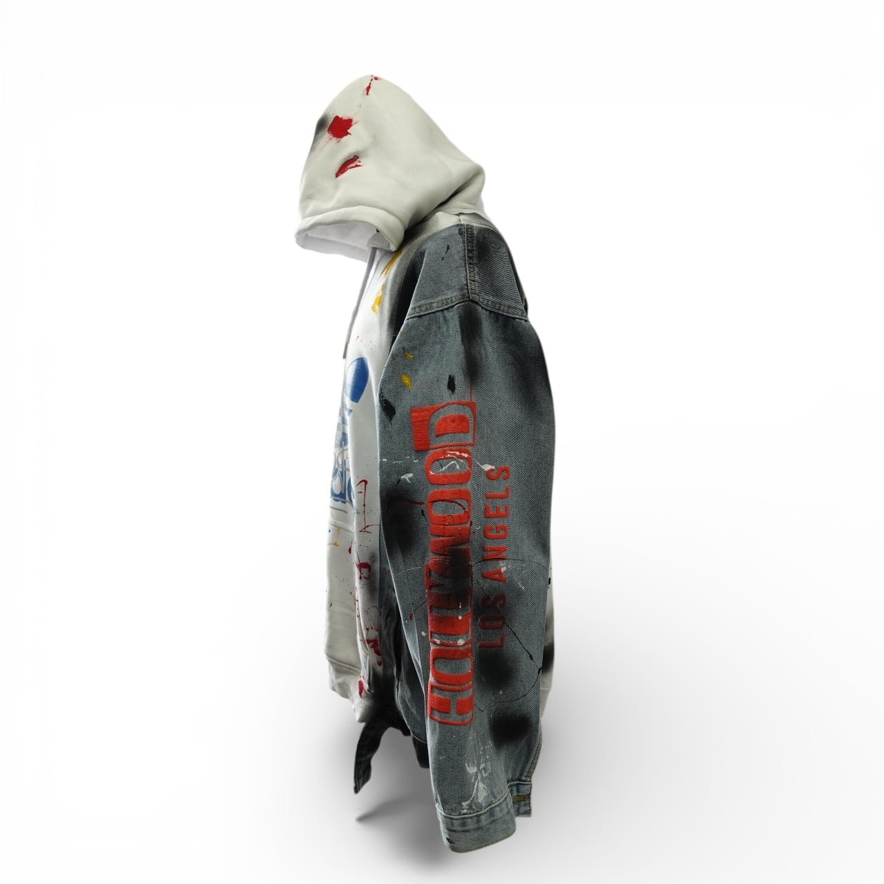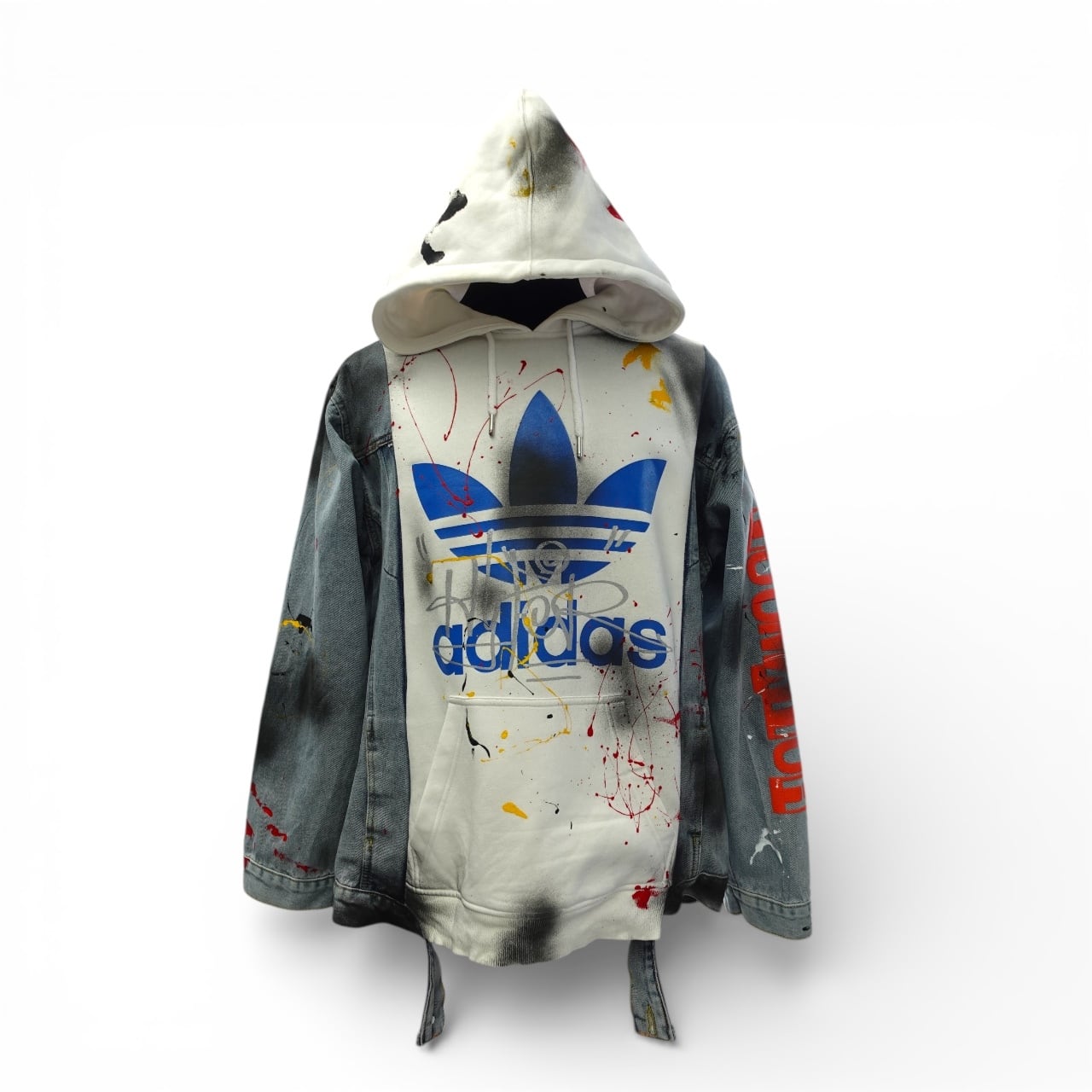 ヴィンテージAdidas hoodieとDenim Jacketを贅沢に組み合わせた、唯一無二のカスタムフーディです。