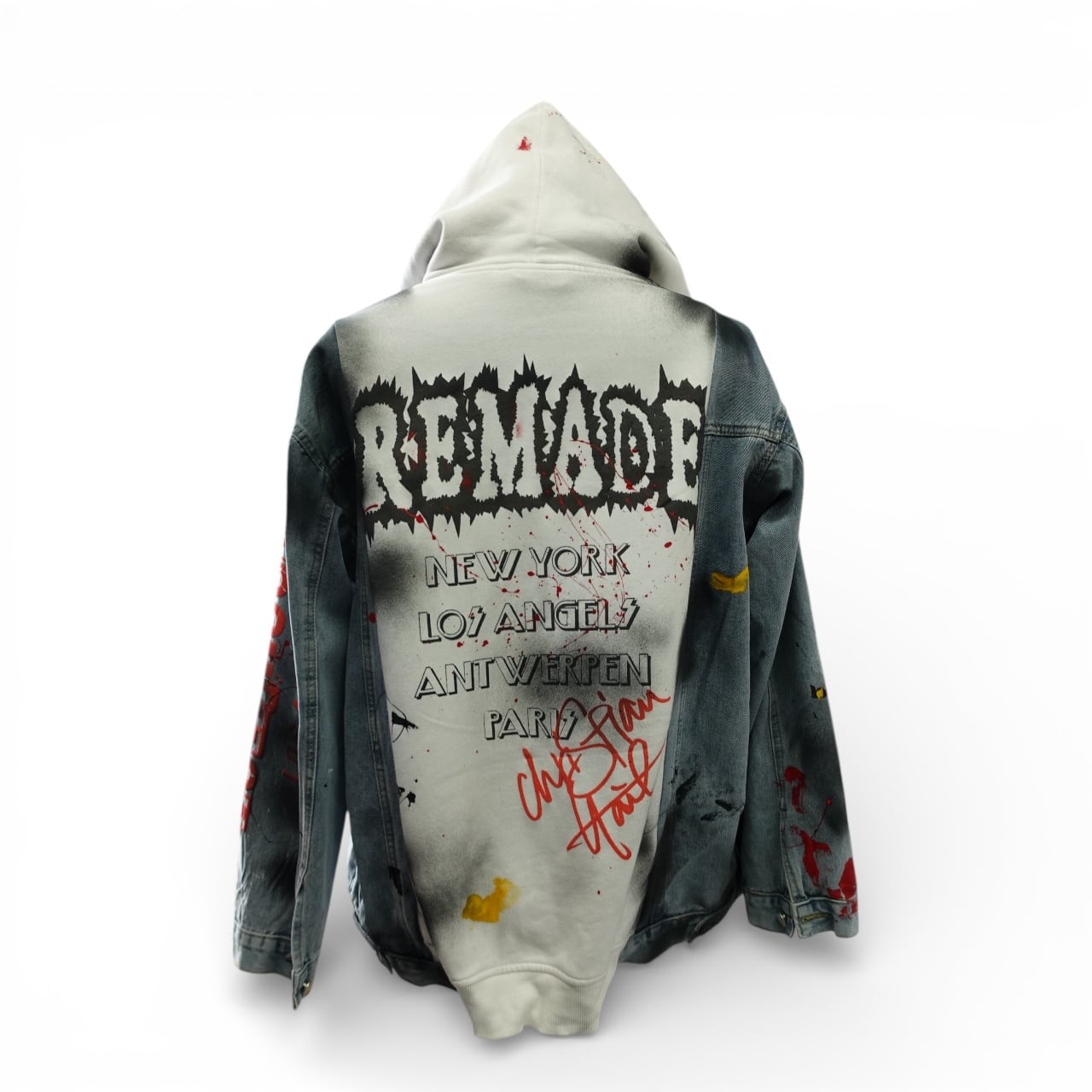 フロントボディには厳選されたヴィンテージ Adidas フーディを採用し、両袖にはデニムジャケットをリメイク。異素材のコントラストが際立つ、存在感のあるデザインに仕上げています。