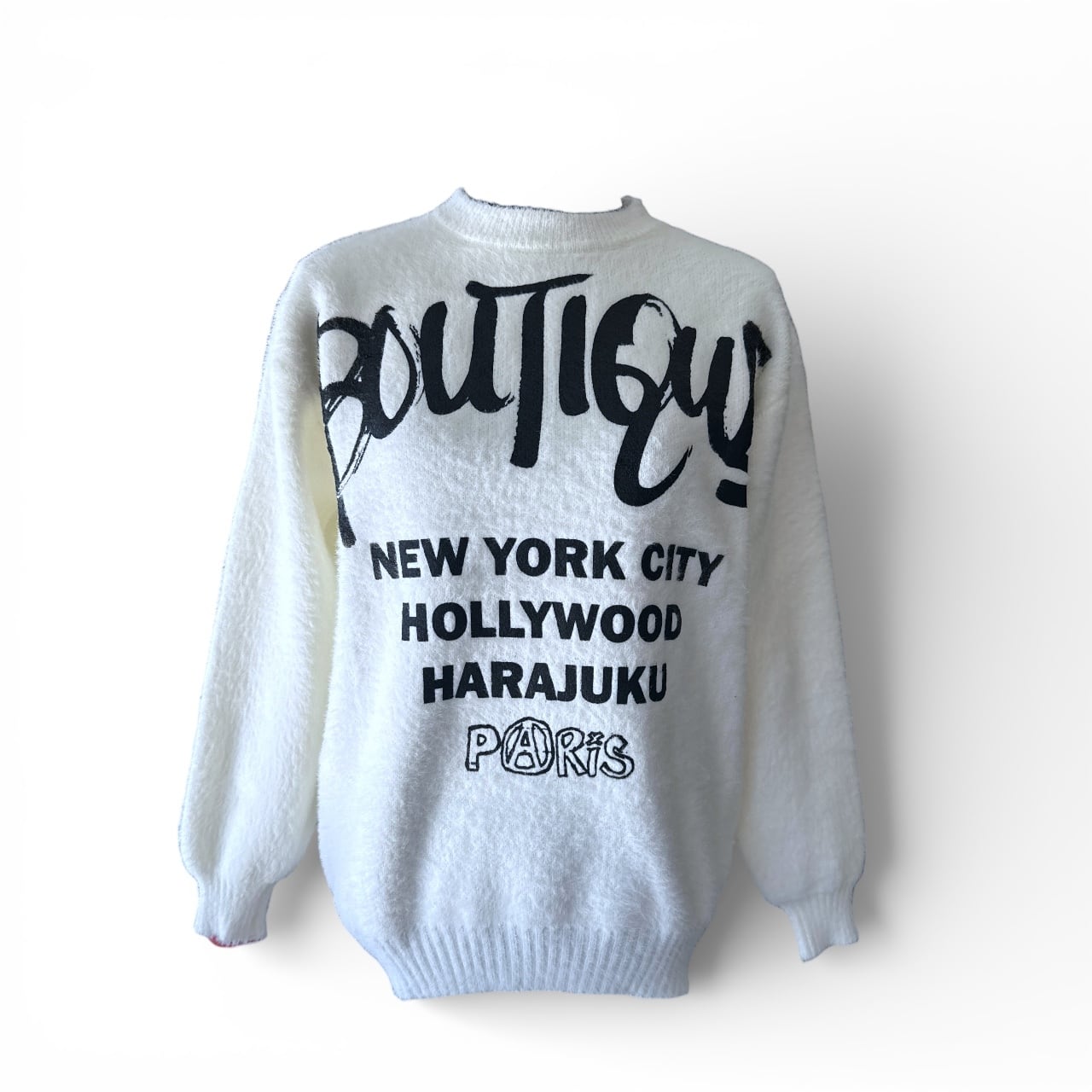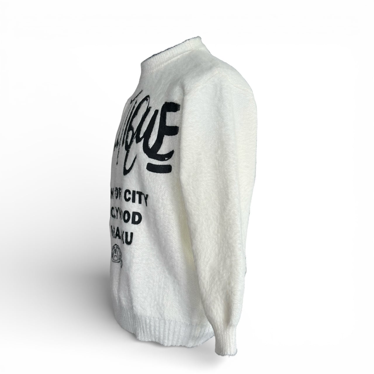 Christian Gailによるオリジナルグラフィックアートをフロントにプリントした、存在感のあるニットプルオーバーです。