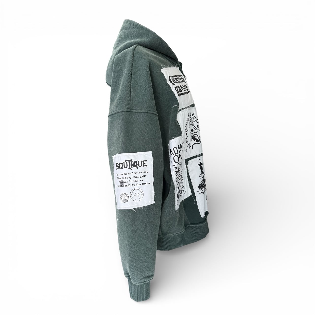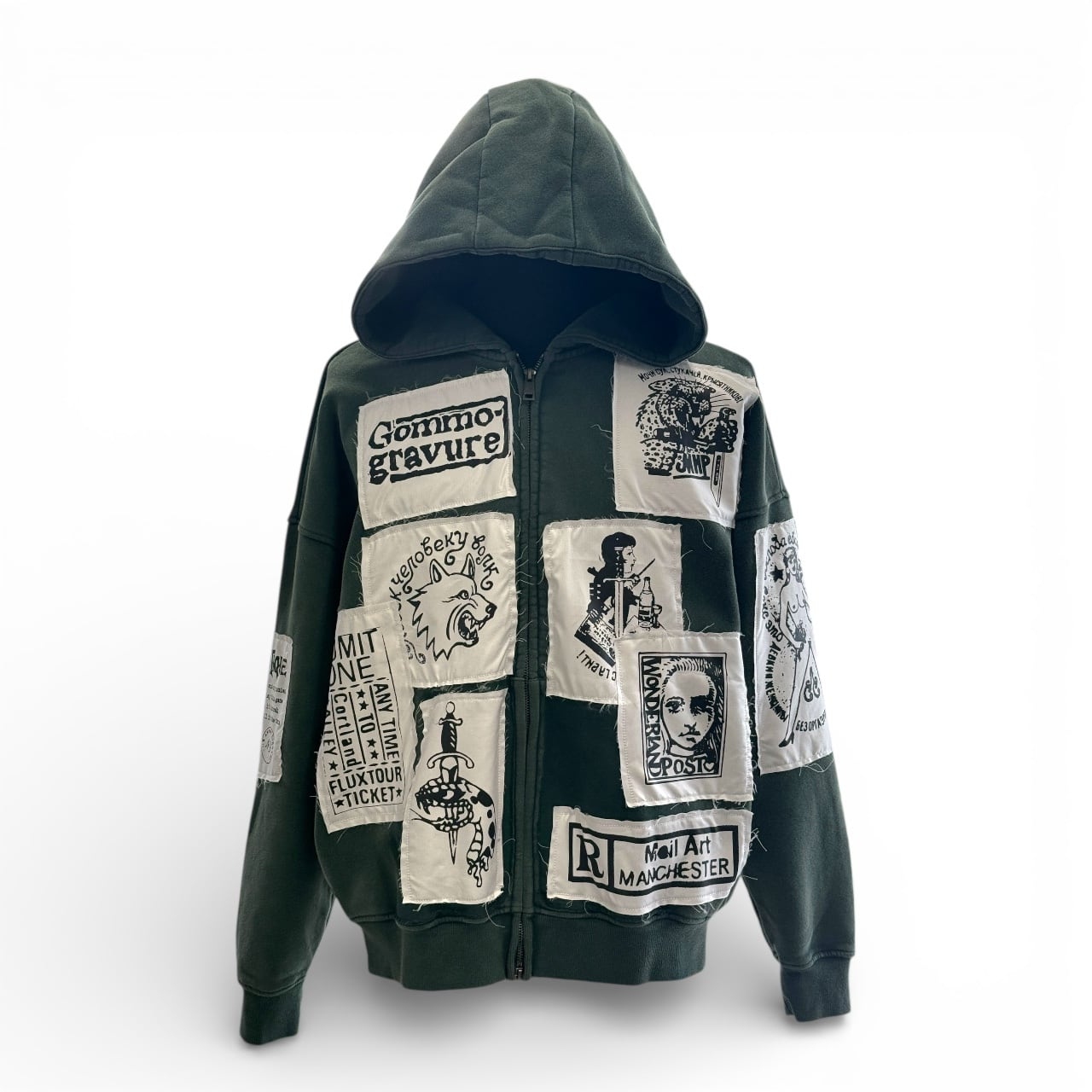 それぞれをジップパーカーへ一点ずつ縫い合わせた、オリジナルアイテムです。