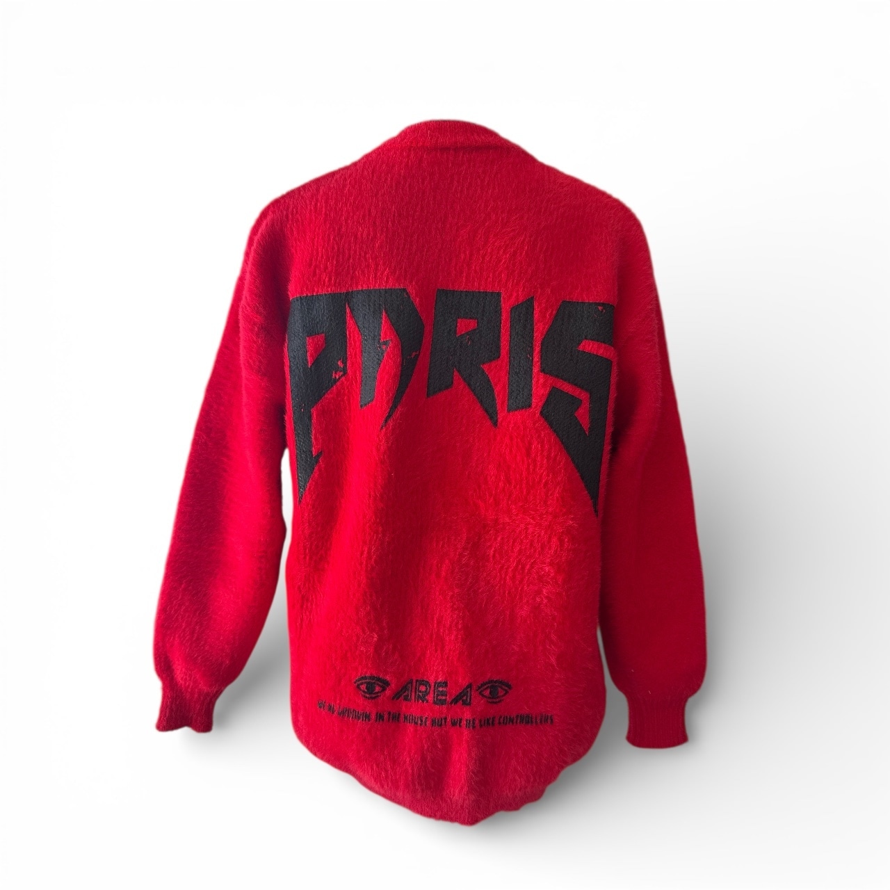 Christian Gailによるオリジナルグラフィックアートをフロントにプリントした、存在感のあるニットプルオーバーです。