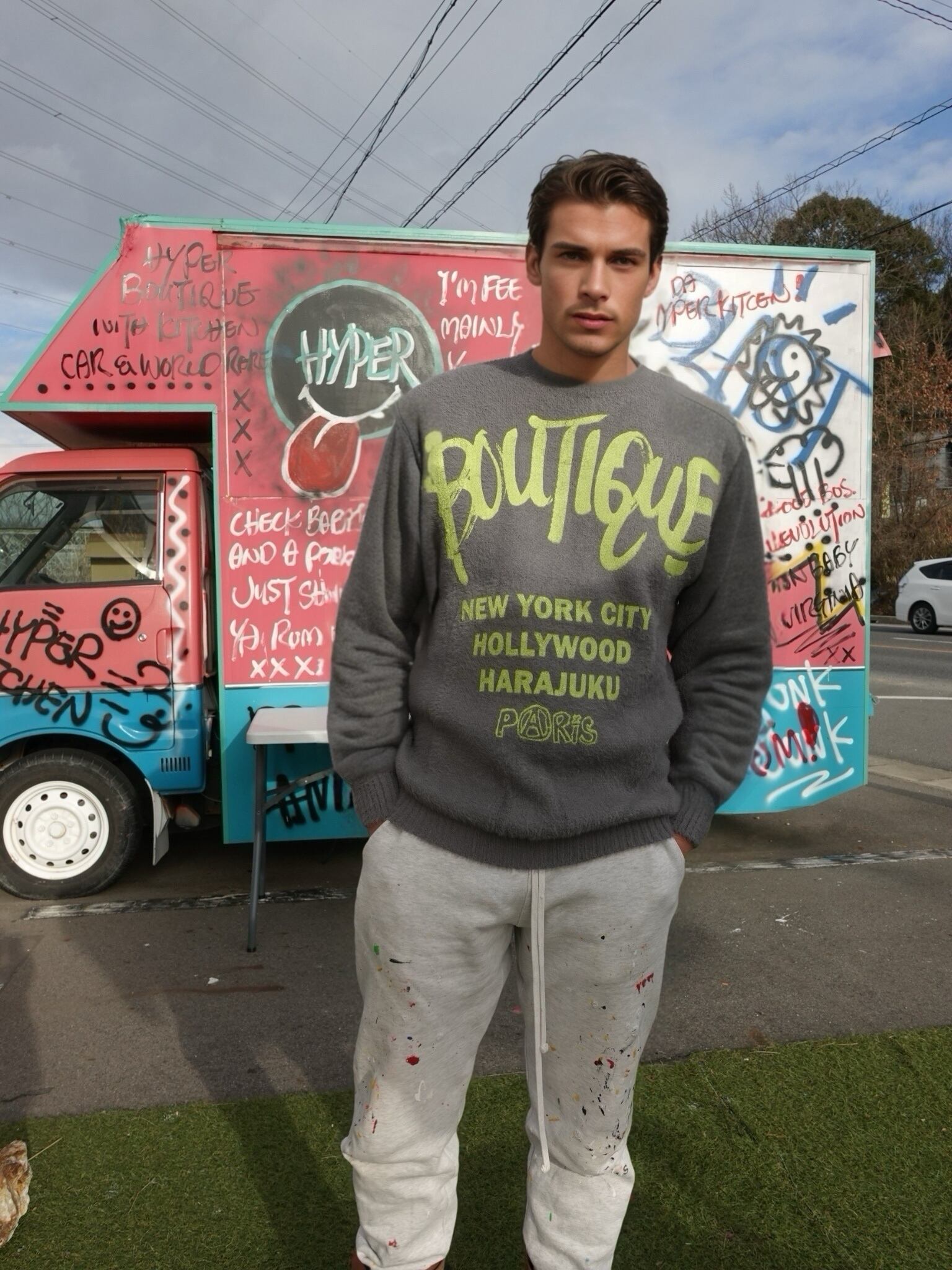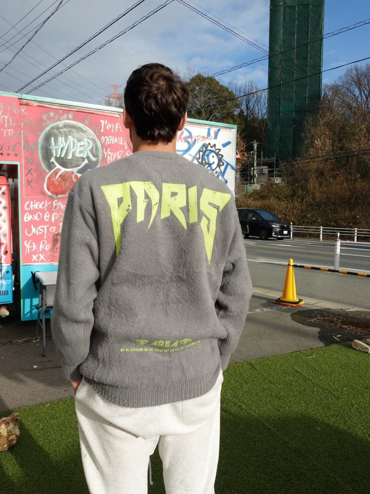 Christian Gailによるオリジナルグラフィックアートをフロントにプリントした、存在感のあるニットプルオーバーです。