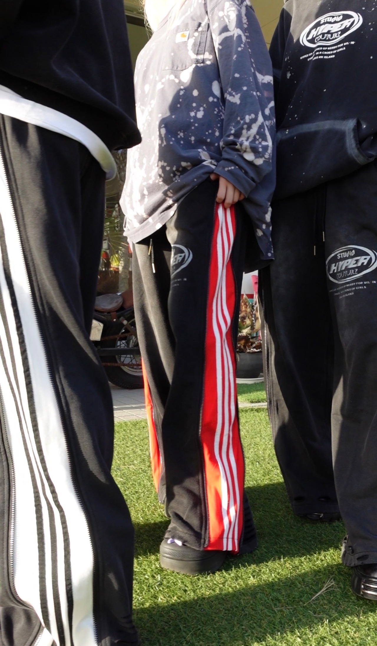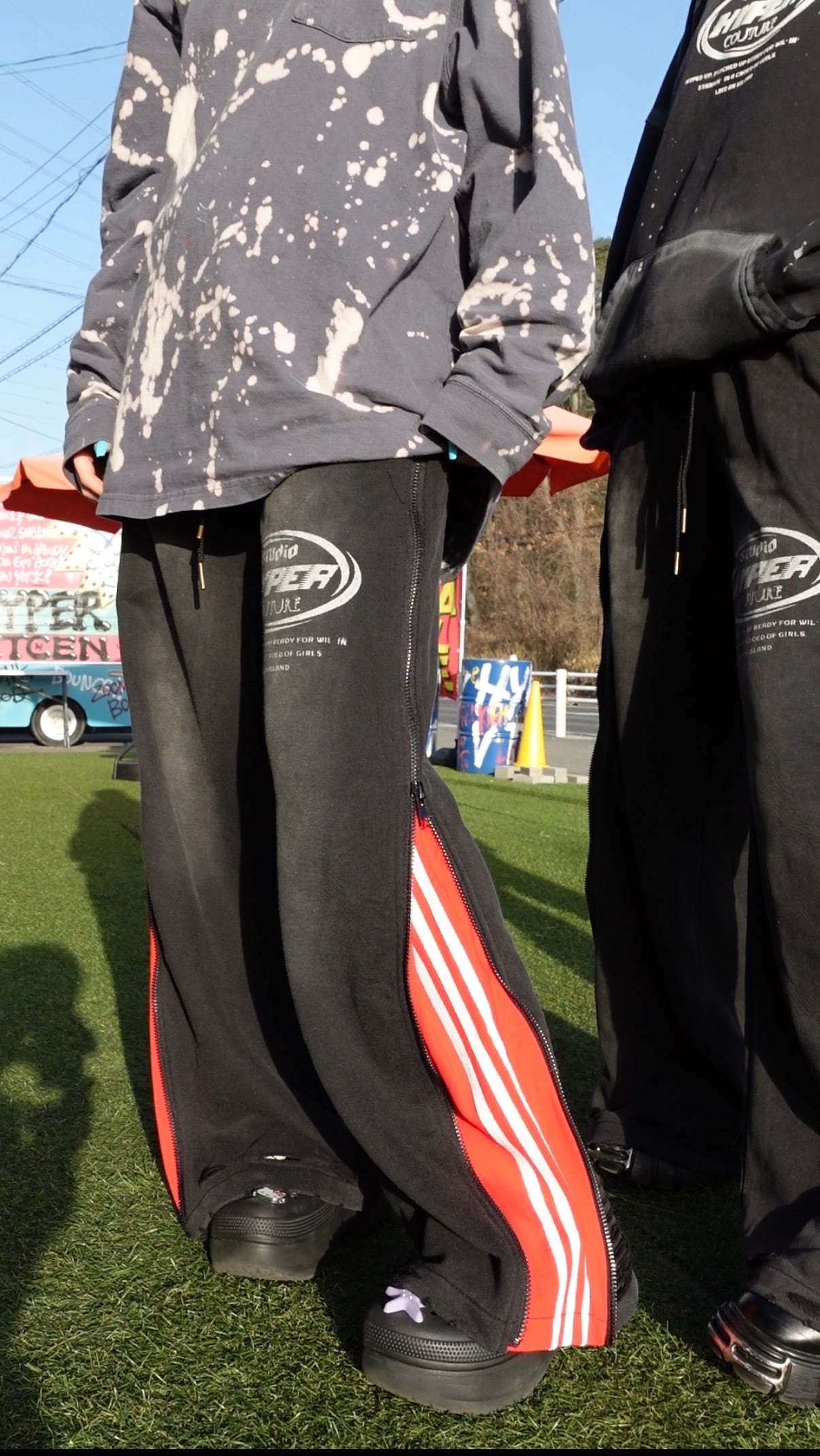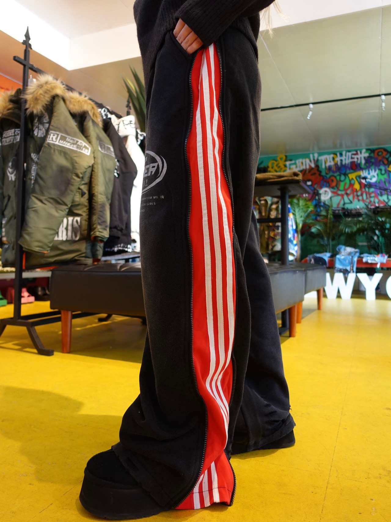 3LINE ZIP WIDE PANTS RED