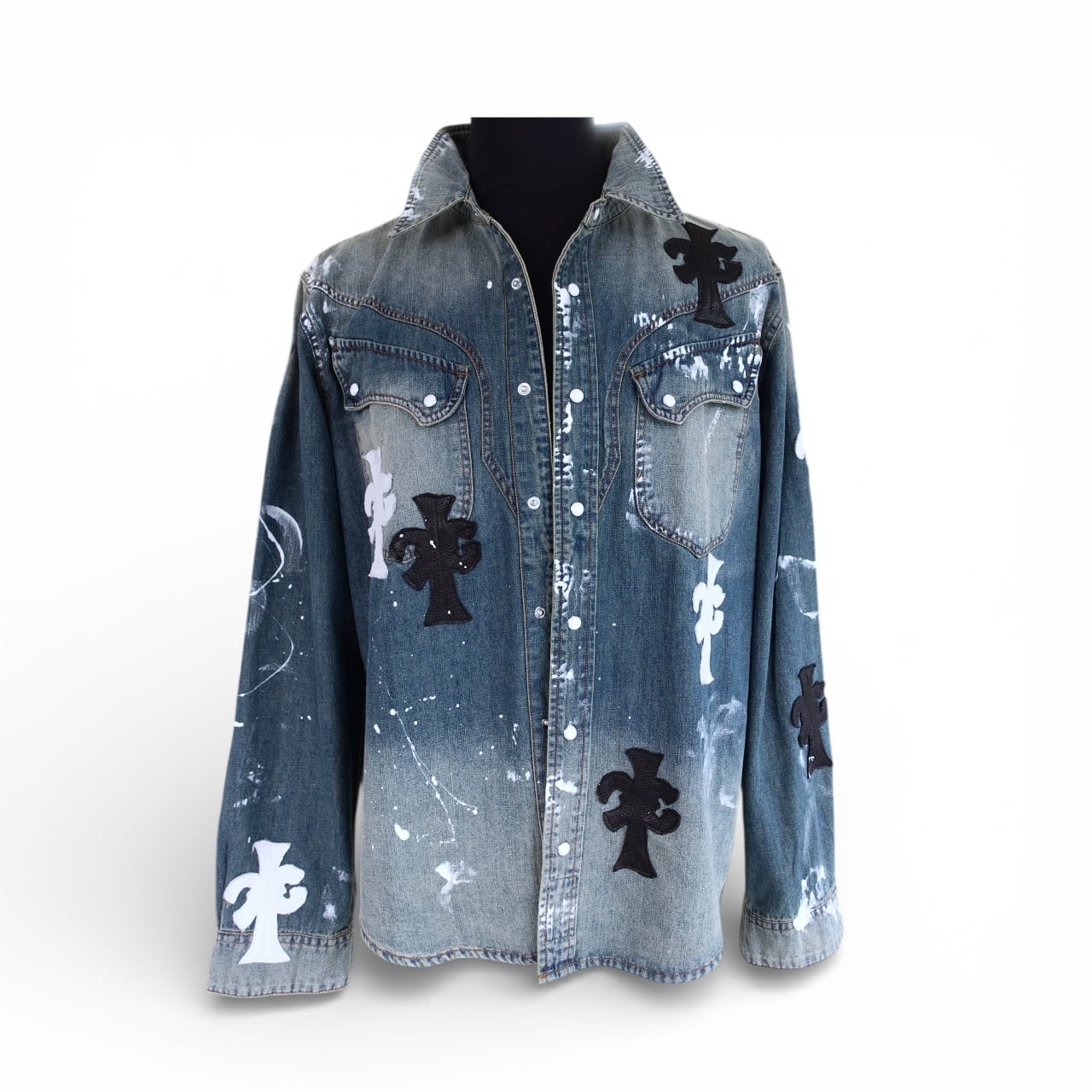 ChristianGail オリジナルのクロスシンボルを、フロント全面に配置したウエスタンシャツ。