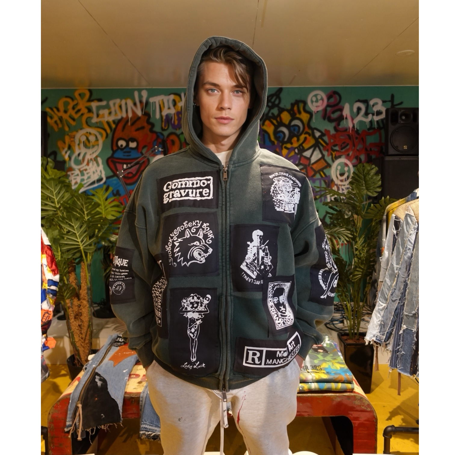 それぞれをジップパーカーへ一点ずつ縫い合わせた、オリジナルアイテムです。