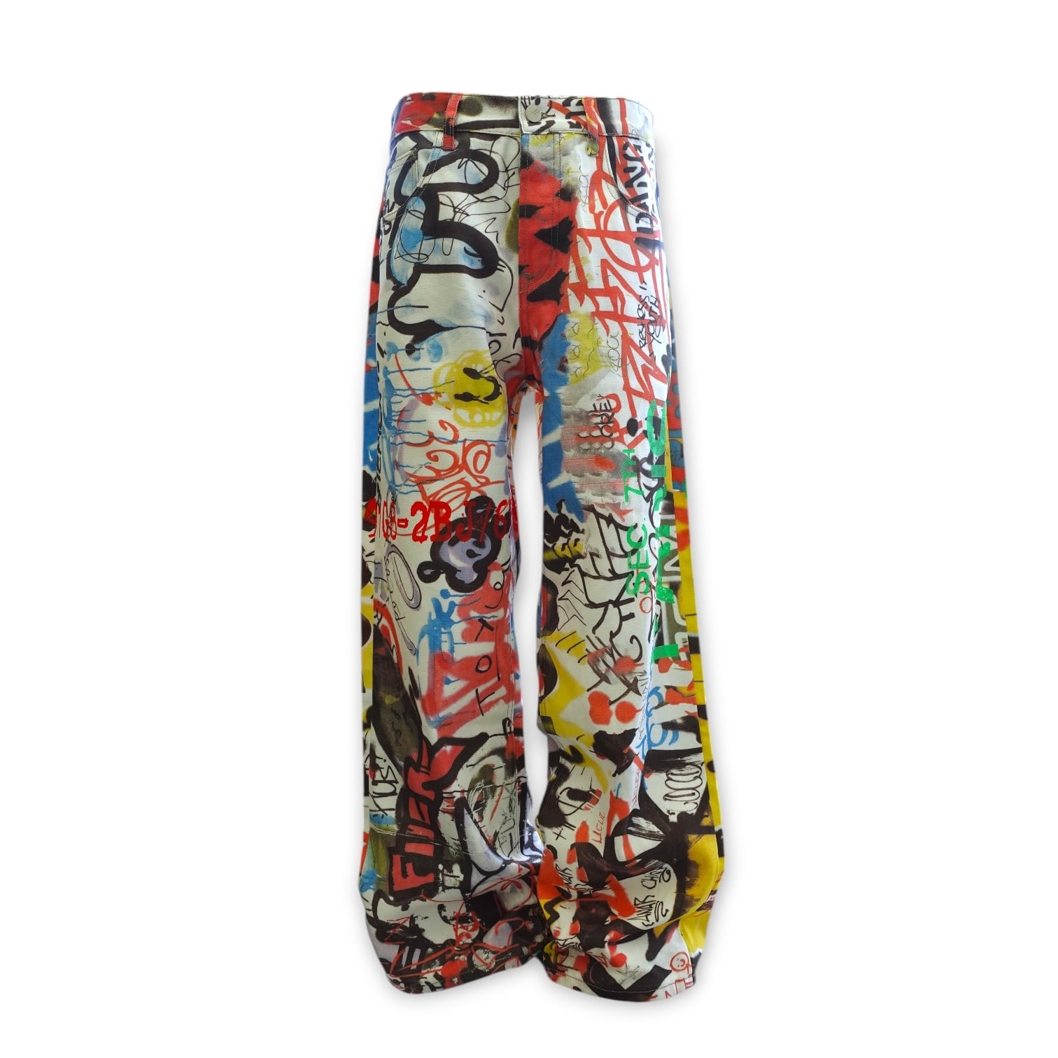 全面に施されたオリジナルのグラフィックアートが目を惹く、存在感抜群のデザインパンツ。