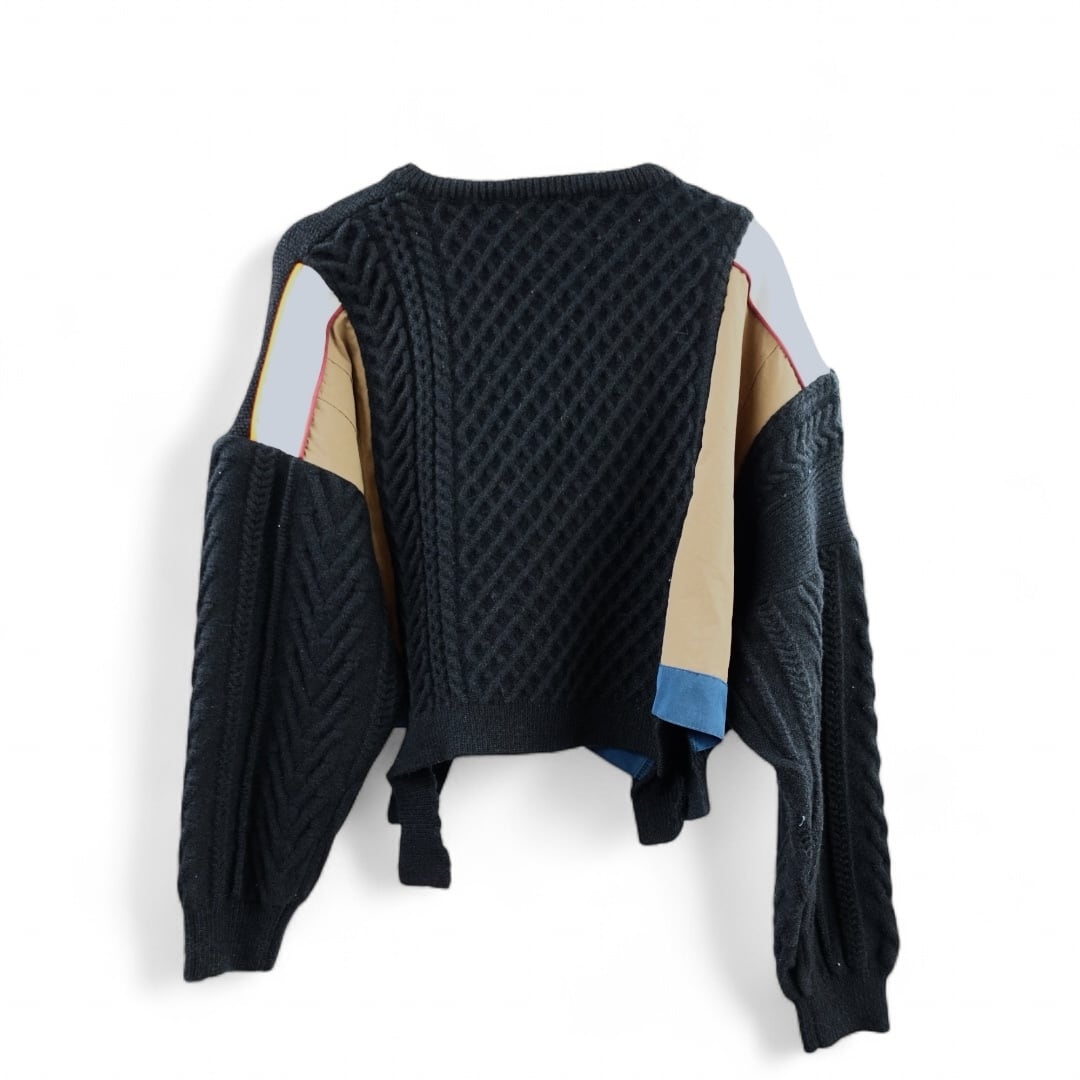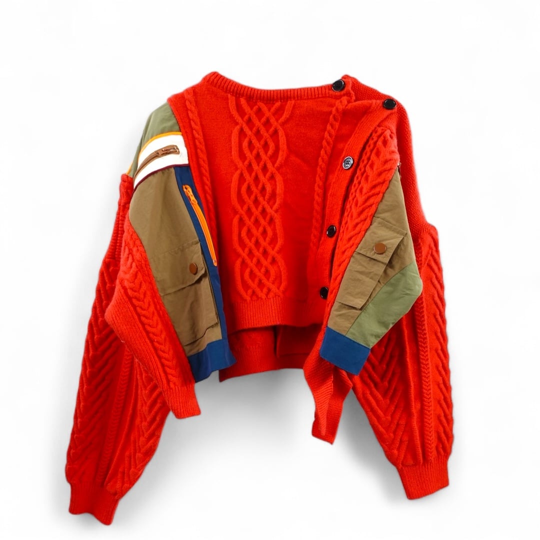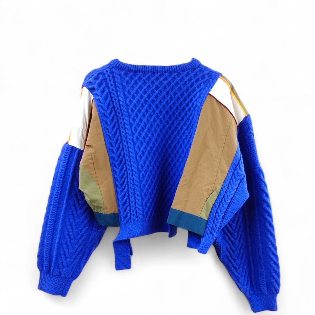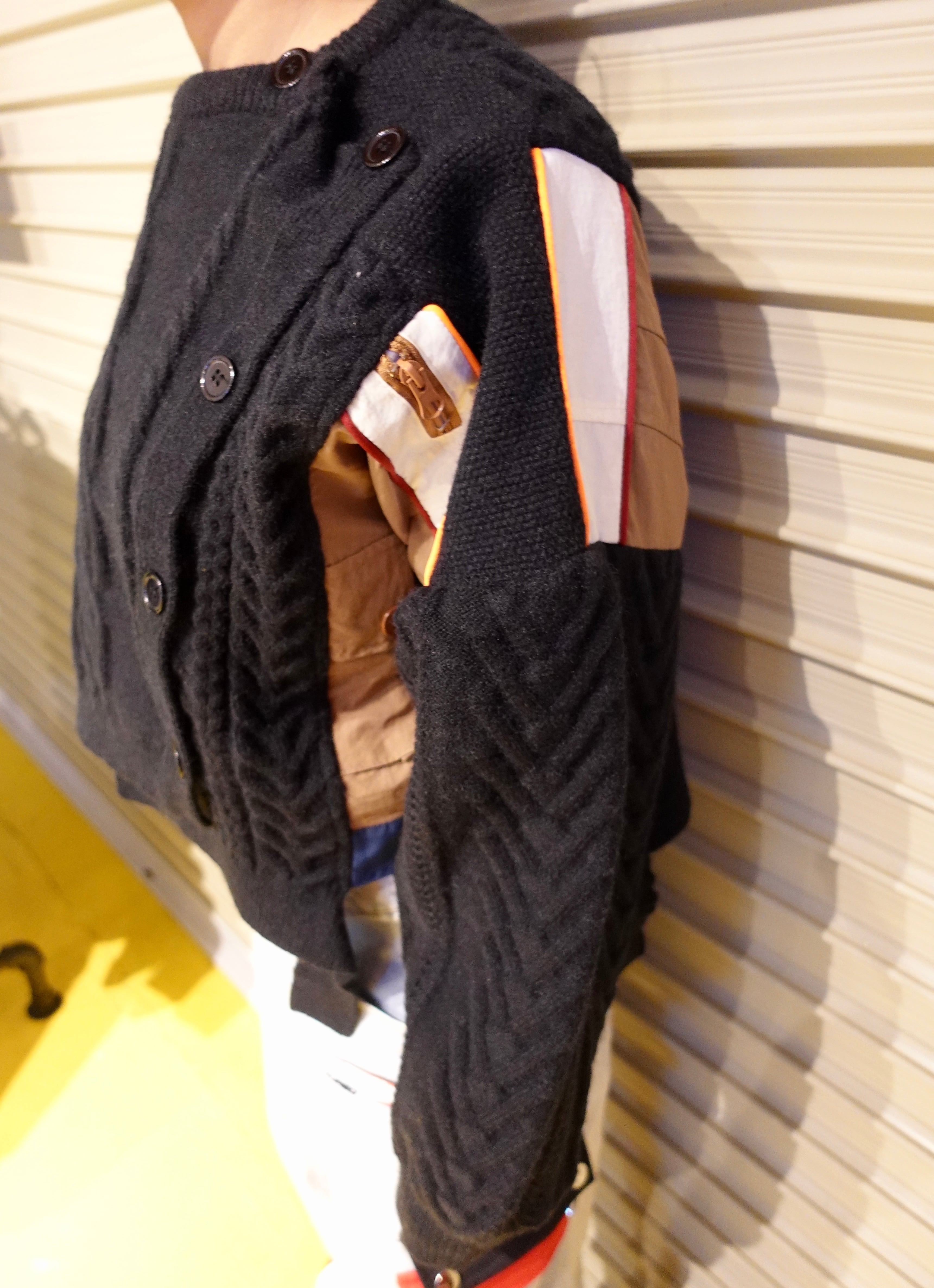 ブルゾンリメイクと太めの編み目がアクセントとなり、シンプルな中にも個性を感じさせます。