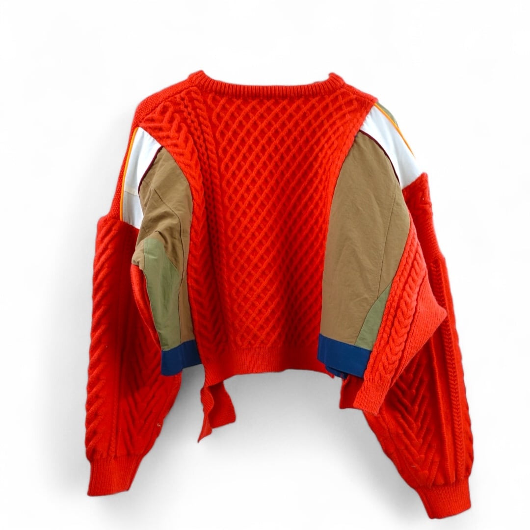 アシンメトリーなデザインが魅力的なリメイクニット。ショート丈でゆったりとしたシルエットが、体型をカバーしつつスタイルアップを実現。